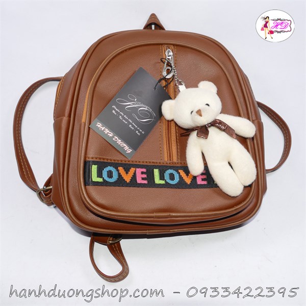 Balo ngọc hân Love ngang kèm thú bông – Kaki đậm