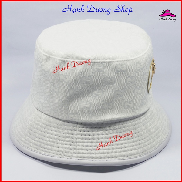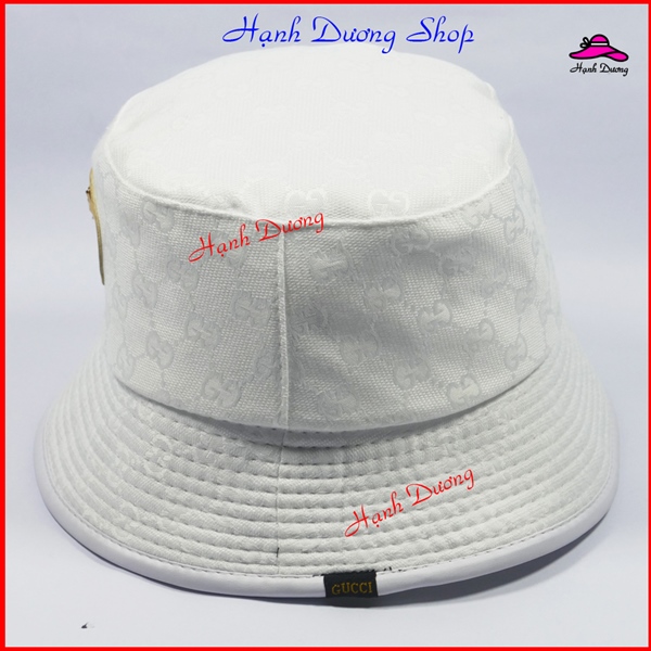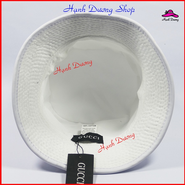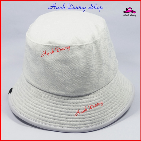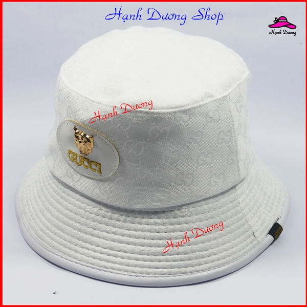 Mũ Bucket, Nón Bucket Tai Bèo có mặt da gắn mặt sắt nổi bật- Vải Cotton cao cấp – Trắng GC