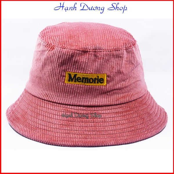 Mũ bucket vành cụp ❤️Nón tai bèo thêu chữ MEMORIE chất nỉ nhung cao cấp form unisex nam nữ 2022 – Hồng