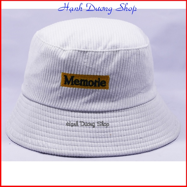 Mũ bucket vành cụp ❤️Nón tai bèo thêu chữ MEMORIE chất nỉ nhung cao cấp form unisex nam nữ 2022 – Trắng