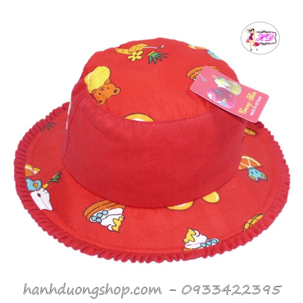 Mũ vải trẻ em từ 1-2 tuổi cá và gấu vành 4 cm, đường kính đầu 15 cm – Đỏ
