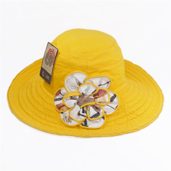 Mũ vải xịn vành 9,5 cm có hoa 11 cánh – Vàng