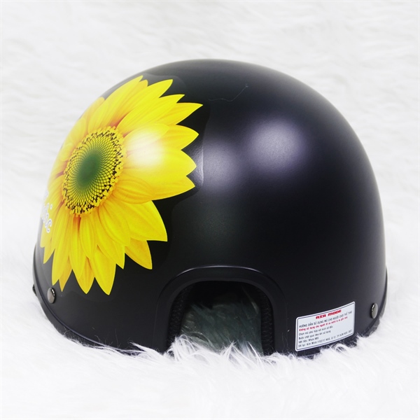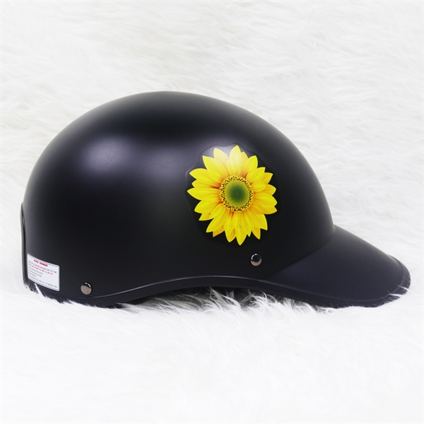 Nón bảo hiểm kết nữ hoa hướng dương có khoét đuôi – Đen