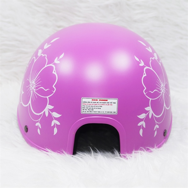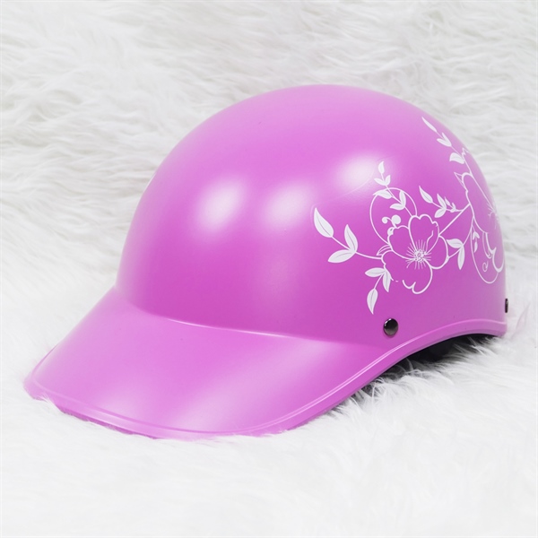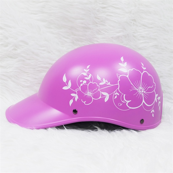 Nón bảo hiểm kết nữ hoa vẽ to có khoét đuôi – Hồng đậm