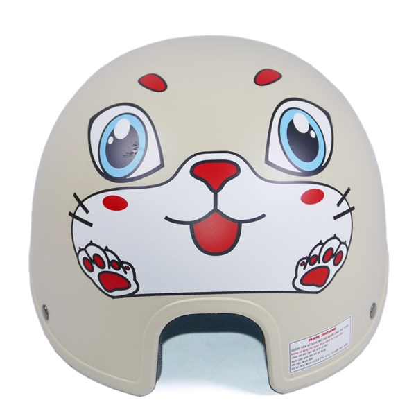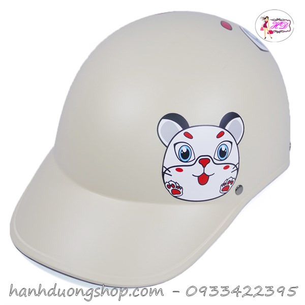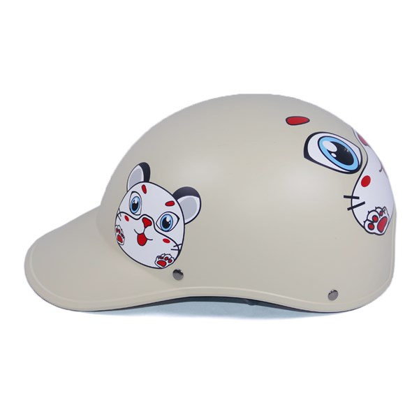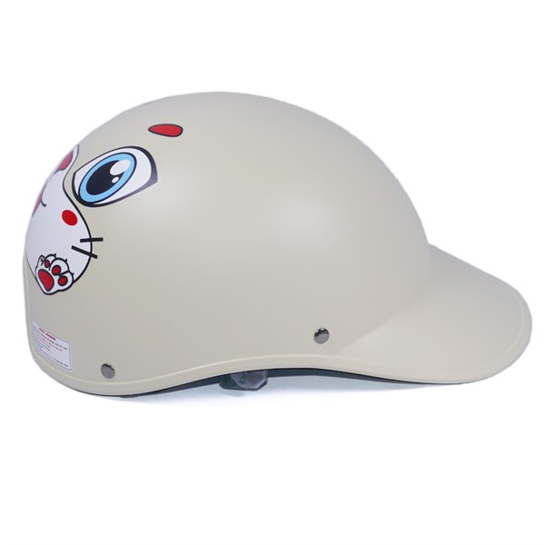 Nón bảo hiểm kết nữ in con mèo có khoét đuôi – Kem Mèo