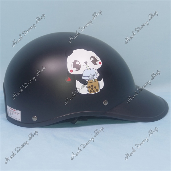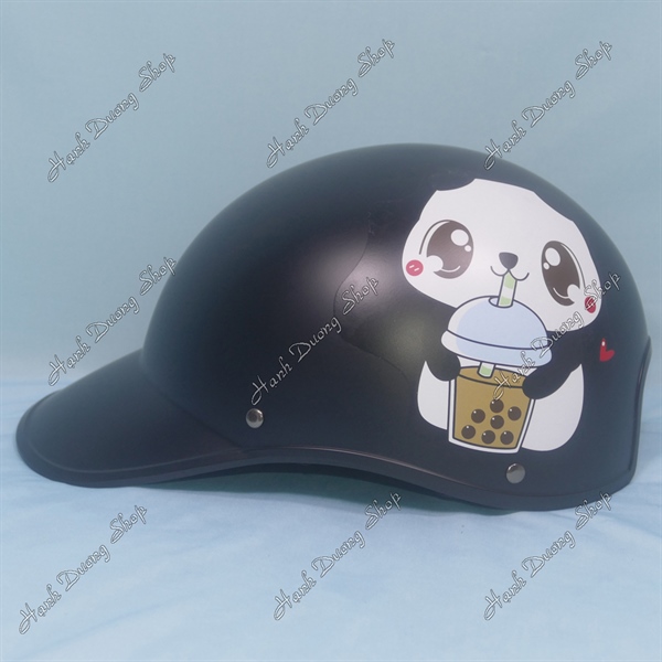 Nón Bảo Hiểm Lưỡi Trai Nữ Hình Gấu Trúc Uống Trà Sữa Đen