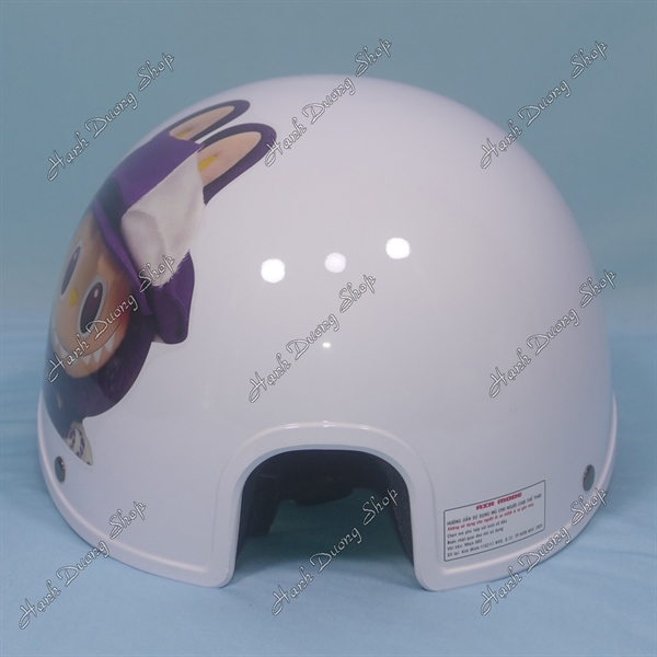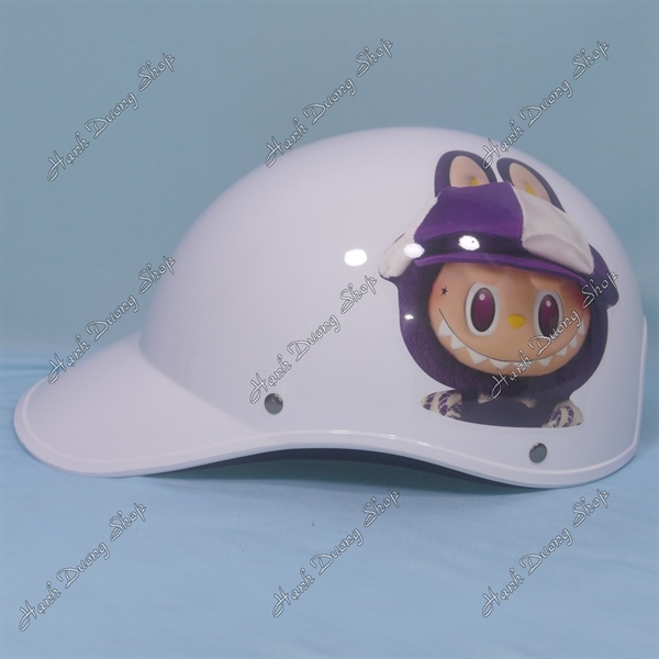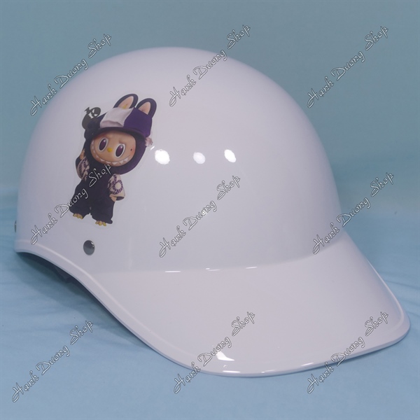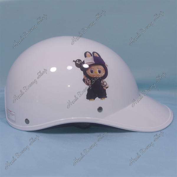 Nón Bảo Hiểm Lưỡi Trai Nữ Hình LaBuBu Phía Sau Có Khoét Lỗ Cột Tóc Trắng