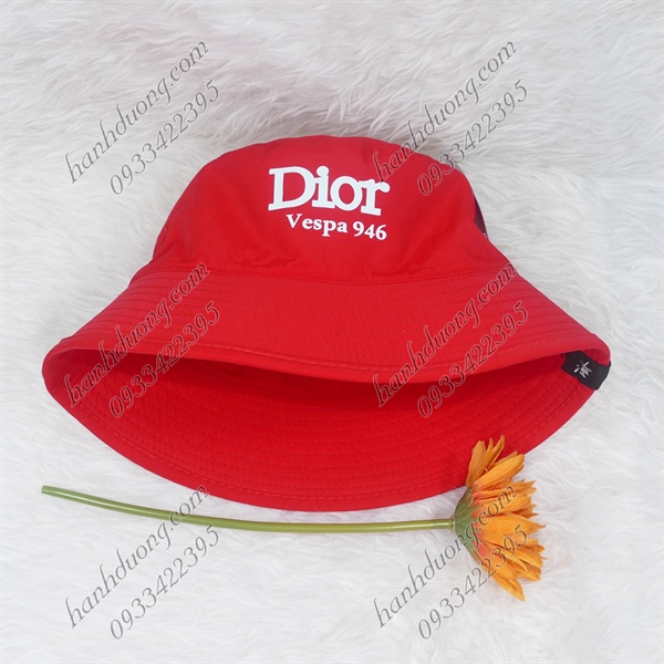 Nón bo cúp 2 mặt chất liệu vải dù cao cấp nón bucket in dạ quang chữ Dior Vespa 946 thời trang phù hợp với nam và nữ – Đỏ cotton