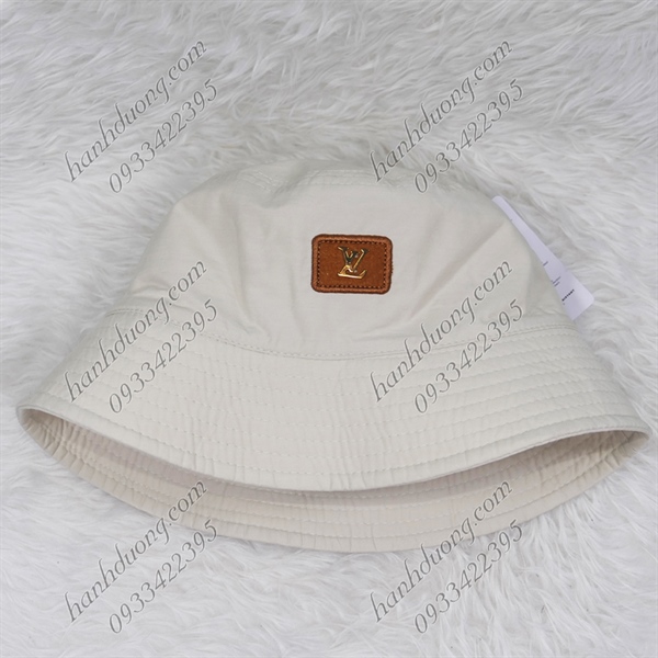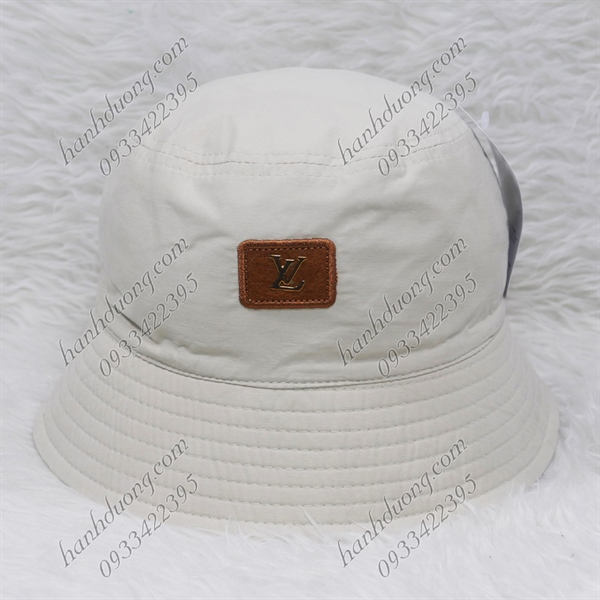 Nón bo cúp 2 mặt thêu mặt da LV vải cotton cao cấp – Xám