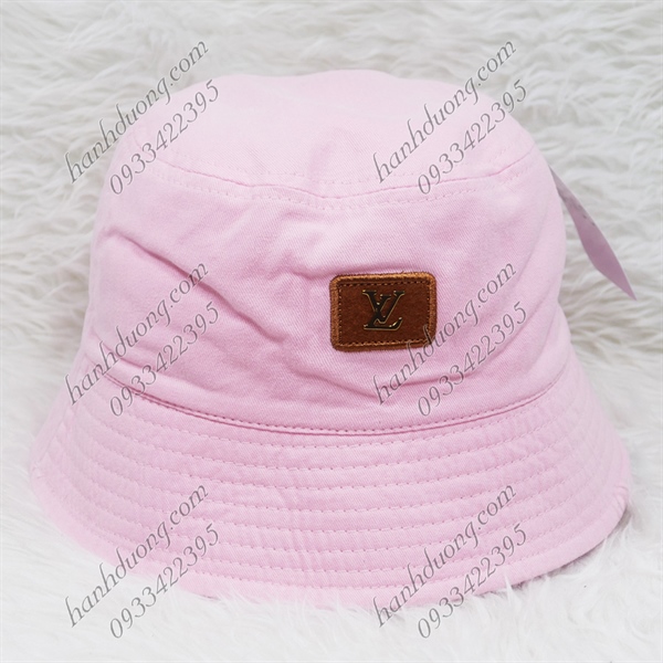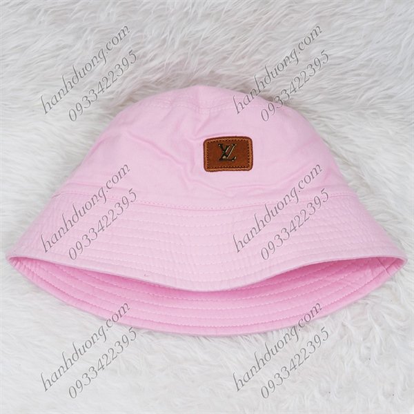 Nón bo cúp 2 mặt thêu mặt da LV vải cotton cao cấp – Hồng