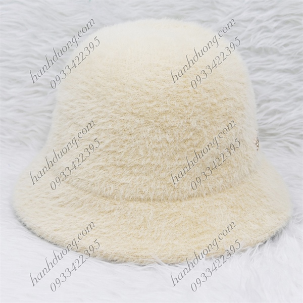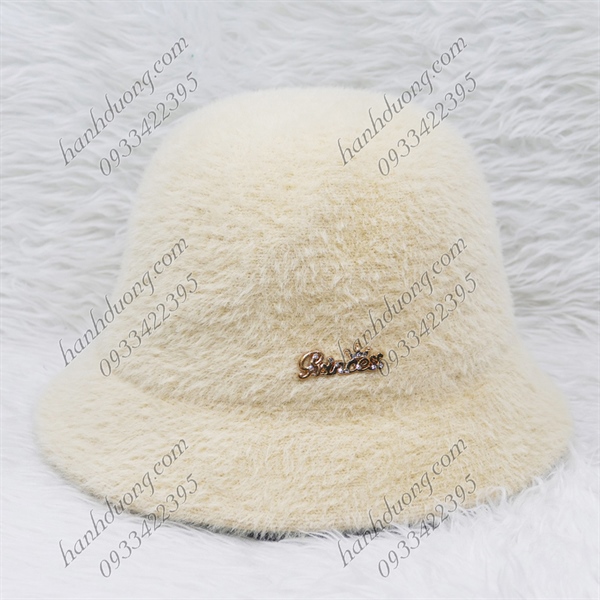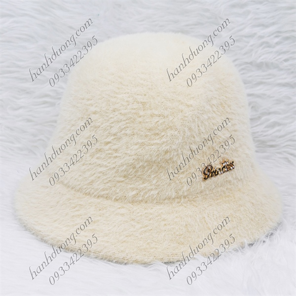 Nón bo cúp lông xù hàng quảng châu gắn mặt sắt chữ Princess, vành rộng 5cm, phía trong có 2 dây rút giúp giữ nón chắt hơn – Kem