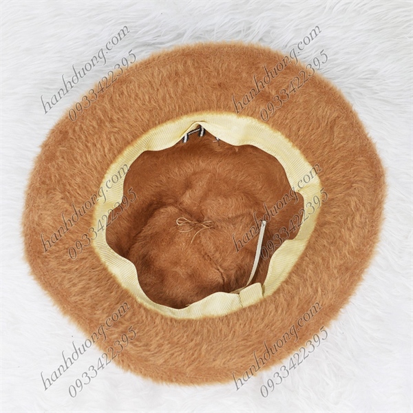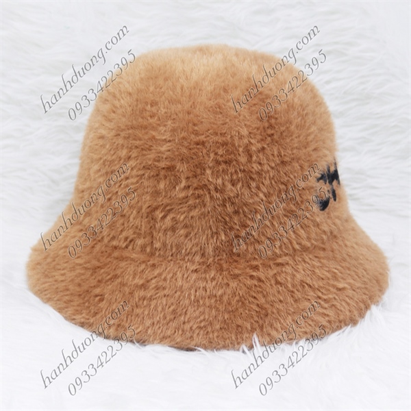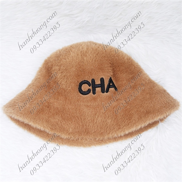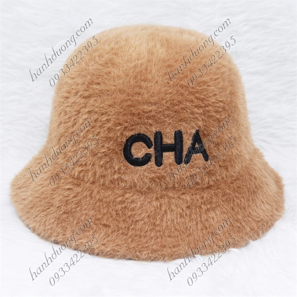 Nón bo cúp lông xù hàng quảng châu thêu chữ CHA, vành rộng 5cm, phía trong có 2 dây rút giúp giữ nón chắt hơn – Nâu