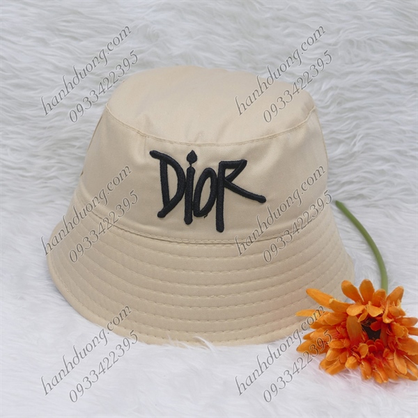 Nón bo cúp nón bucket cúp vành nhỏ thêu chữ Dior vải cotton thời trang phù hợp cả nam và nữ – Be
