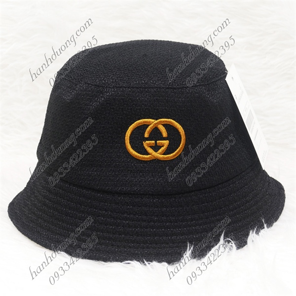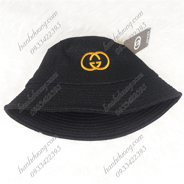 Nón Bo Cúp Thêu Chữ Gucci Vành Rộng 5,5 Cm Vải Cotton Cao Cấp Đen