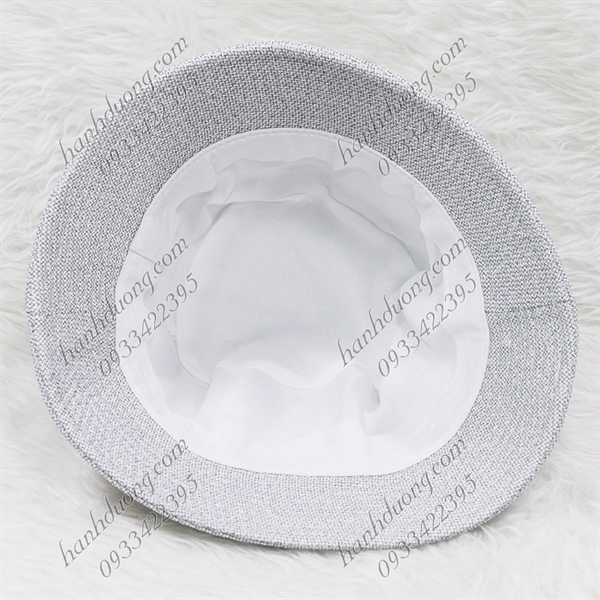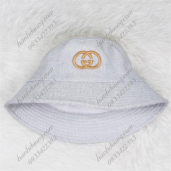 Nón Bo Cúp Thêu Chữ Gucci Vành Rộng 5,5 Cm Vải Cotton Cao Cấp Xám Trắng