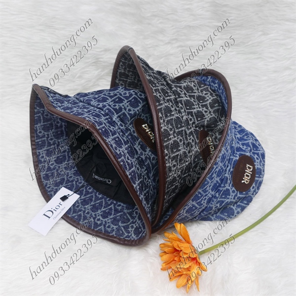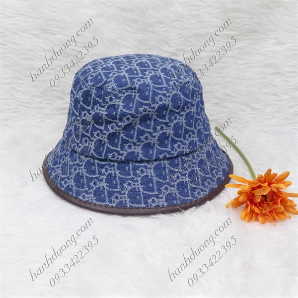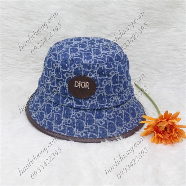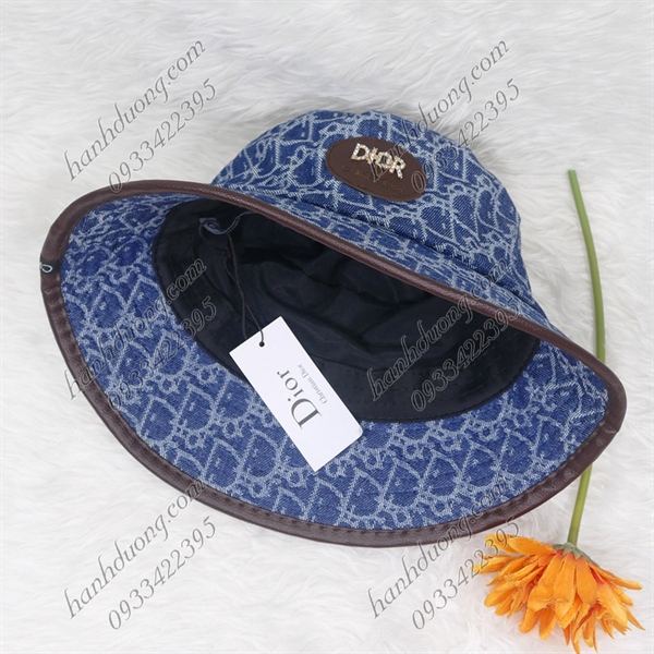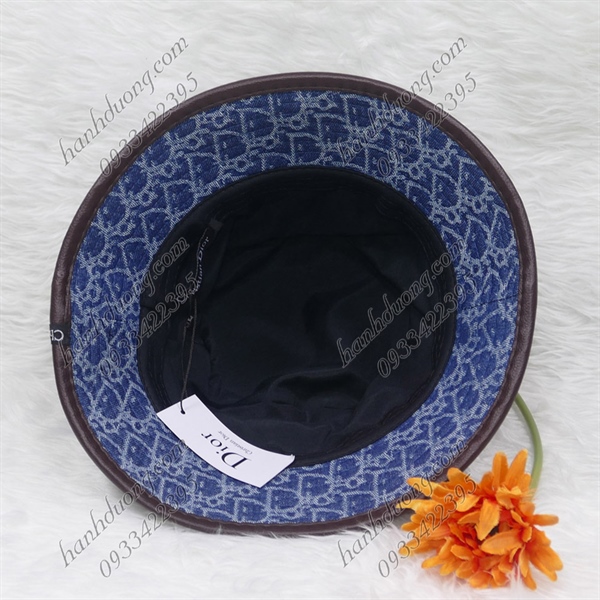 Nón bo jeans cao cấp nón bucket thêu mặt da Christian Dior vành viền da có may tem thời trang phù hợp cả nam và nữ – Xanh jean sáng