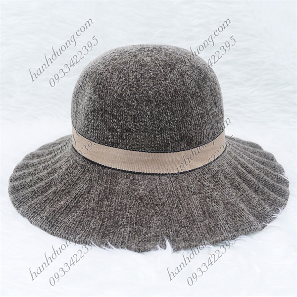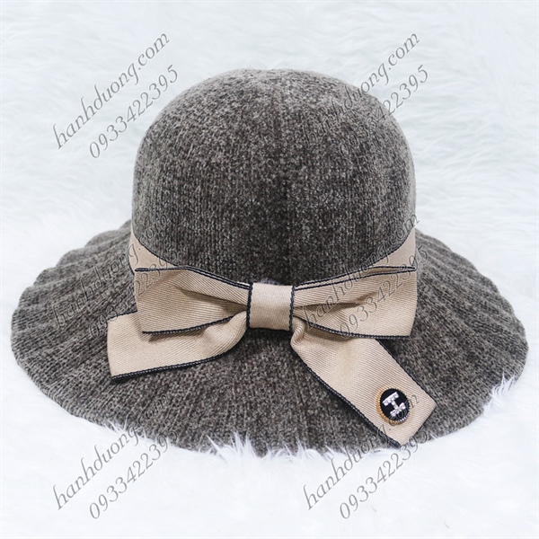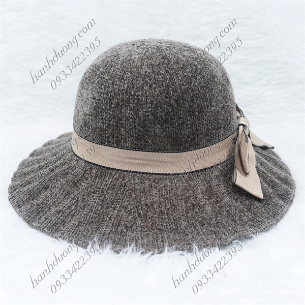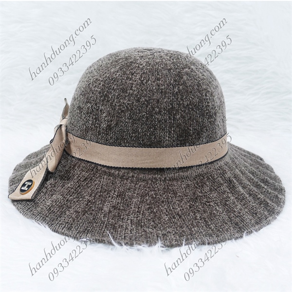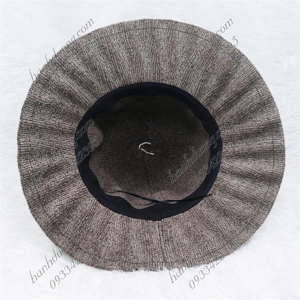 Nón bo nhung vành xếp ly có thắt nơ chữ H, hàng quảng châu vành rộng 8cm, phía trong có 2 dây rút ở vành đai – Nâu