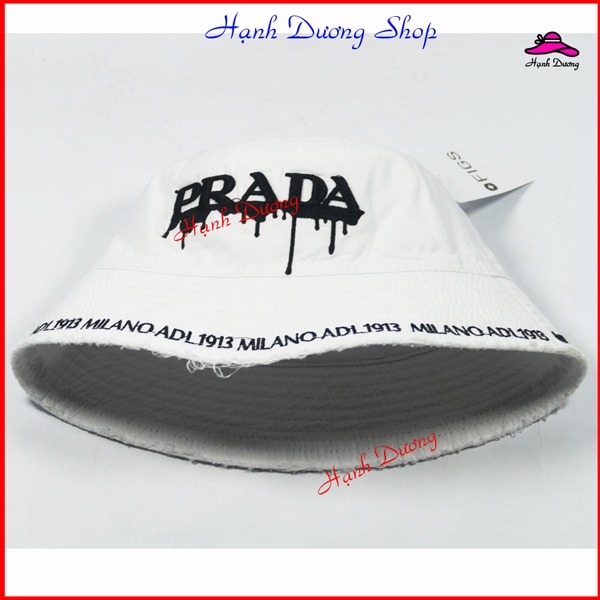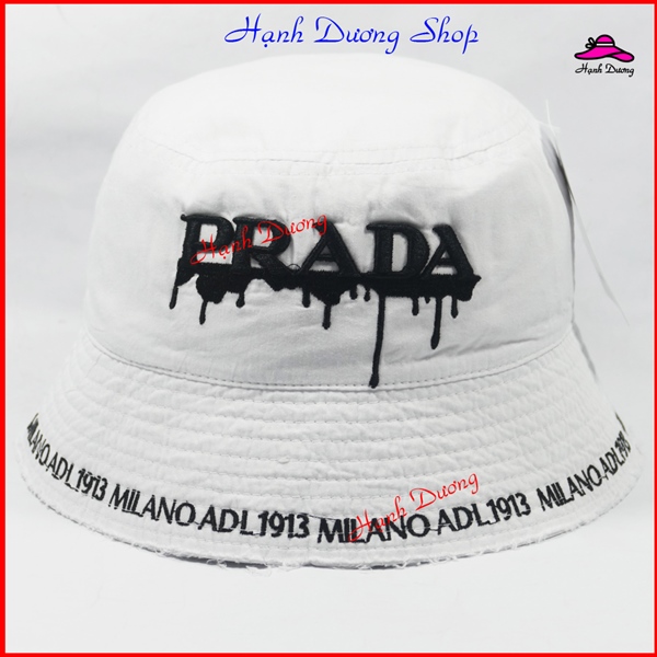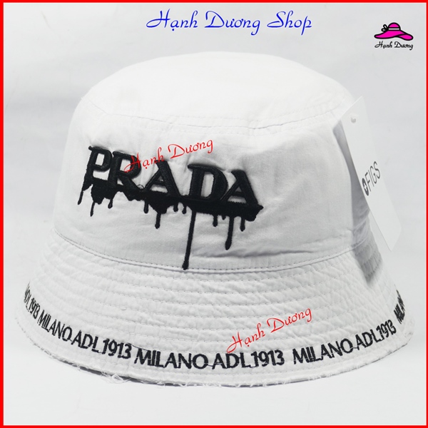 Nón bucket bo cụp PRADA Vành Tua siêu sang chảnh hợp thời trang – Trắng