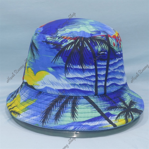 Nón Bucket Họa Tiết Cây Dừa Lá Đen