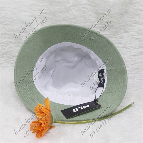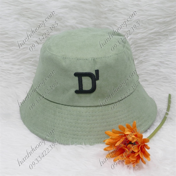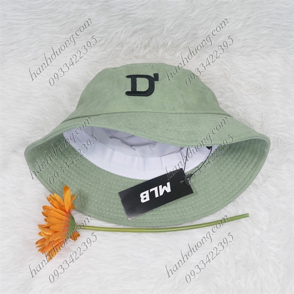Nón bucket nhung nón bo nhung sớ nhuyễn thêu chữ D’ vải nhập có tem MLB phía trong – Xanh mint