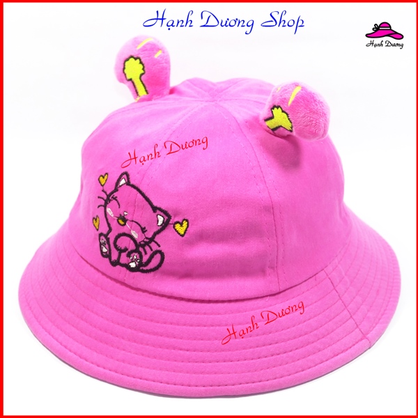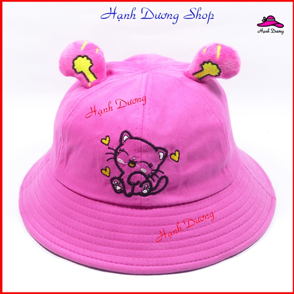 Nón bucket ,nón tai bèo trẻ em hình CON MÈO dễ thương – chât liệu vải nhung mềm mại tạo cảm giác cho bé – Hồng