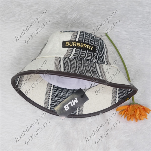 Nón Bucket Thêu Chữ Burberry Có Tem MLB Đẳng Cấp Phù Hợp Cả Nam Và Nữ Đen