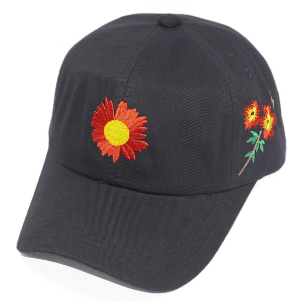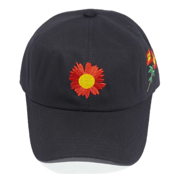 Nón kết hoa cúc trước mặt và bên hông – Đen hoa đỏ