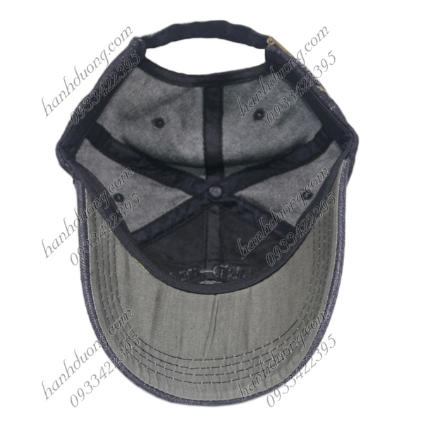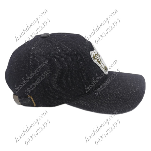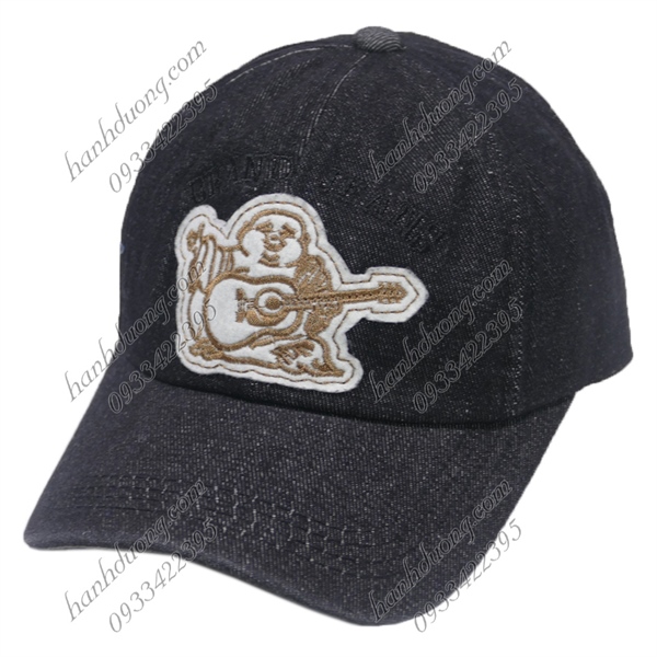 Nón kết jean gắn hình ông địa thời trang, khóa gài đồng (ODIA01) – Đen
