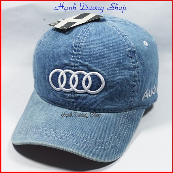 Nón kết jean thêu logo xe Audi, khóa inox xịn – Xanh nhạt