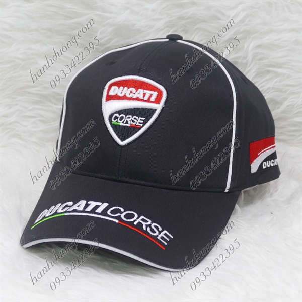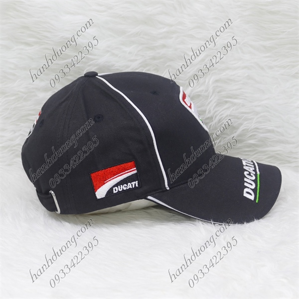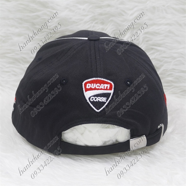 Nón kết logo thương hiệu xe Ducati – Đen sọc trắng