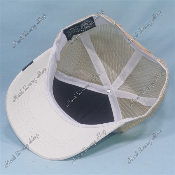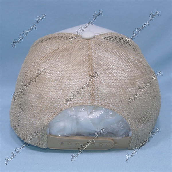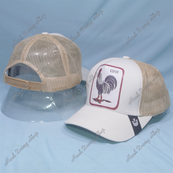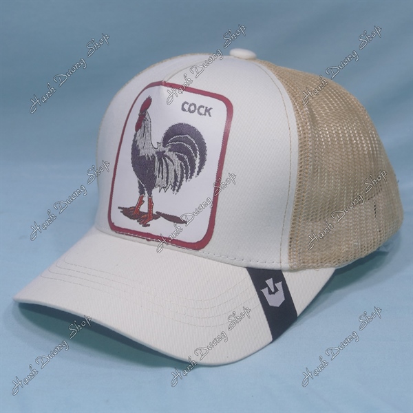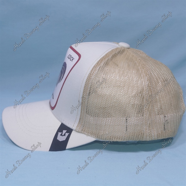 Nón Kết Lưới In Con Gà Trống In Chữ Cock Phía Sau Khóa Nhựa Phía Trong Và Trước Có Tem Vòng Đầu 55-58cm Kem Trắng