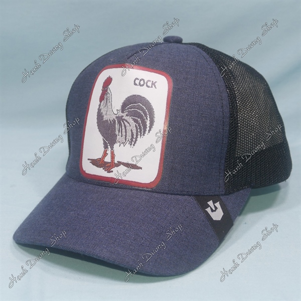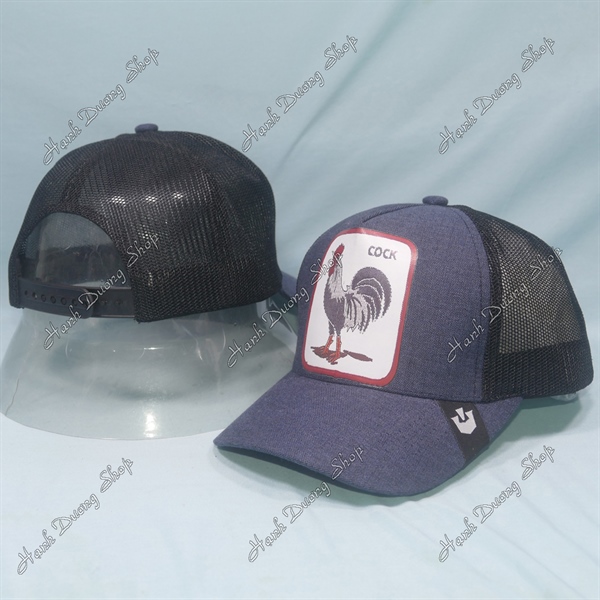 Nón Kết Lưới In Con Gà Trống In Chữ Cock Phía Sau Khóa Nhựa Phía Trong Và Trước Có Tem Vòng Đầu 55-58cm Xanh Đen