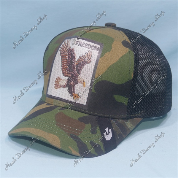 Nón Kết Lưới In Đại Bàng In Chữ Freedom Phía Sau Khóa Nhựa Phía Trong Và Trước Có Tem Vòng Đầu 55-58cm Lính