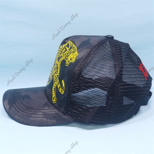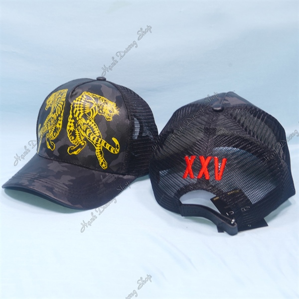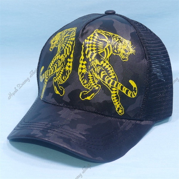 Nón Kết Lưới In Họa Tiết 2 Con Hổ Khóa Dán Đen Hoa
