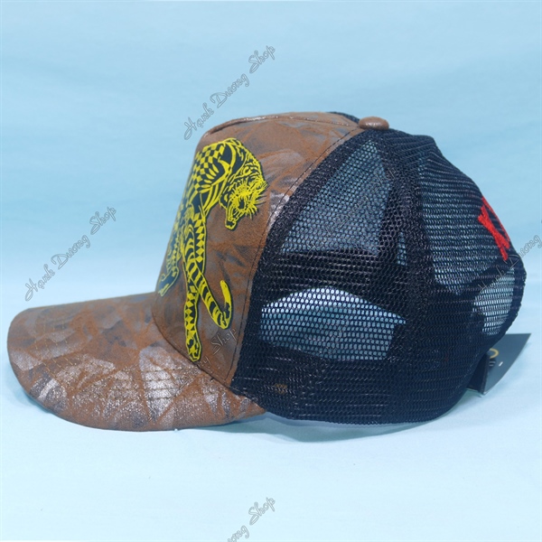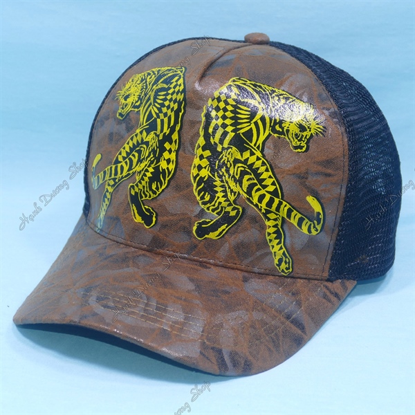 Nón Kết Lưới In Họa Tiết 2 Con Hổ Khóa Dán Nâu