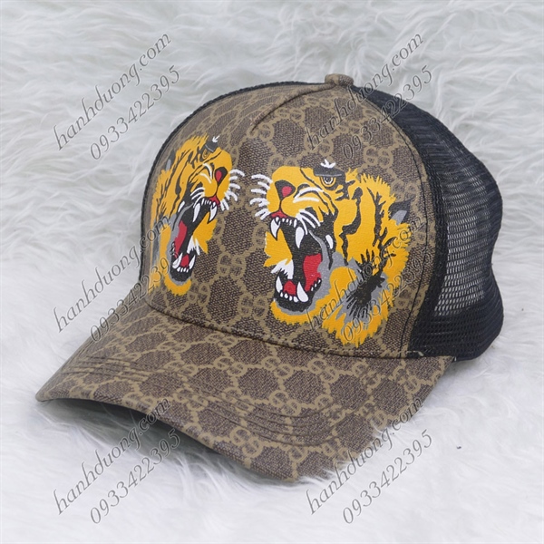 Nón kết lưới thêu họa tiết 2 đầu cọp ngầu, phong cách – Nâu & Đen 2 đầu cọp