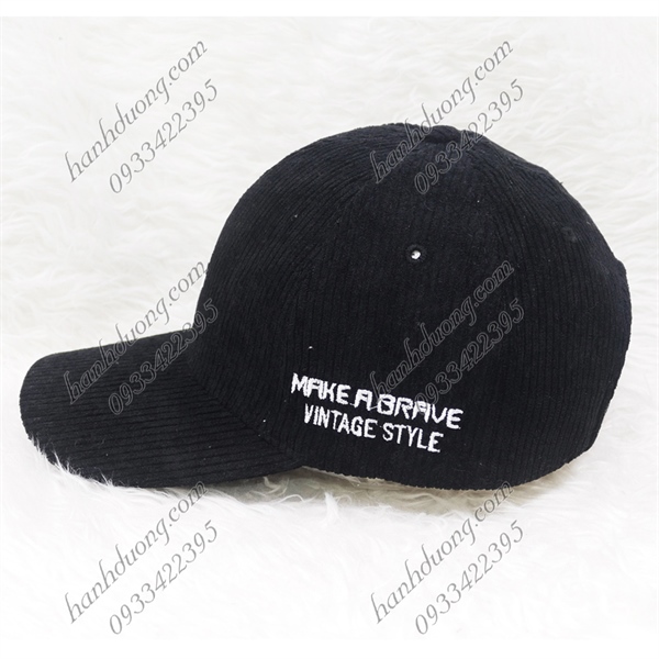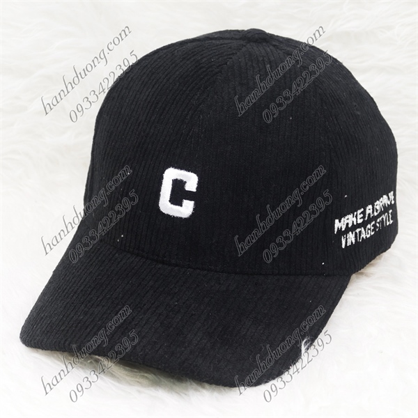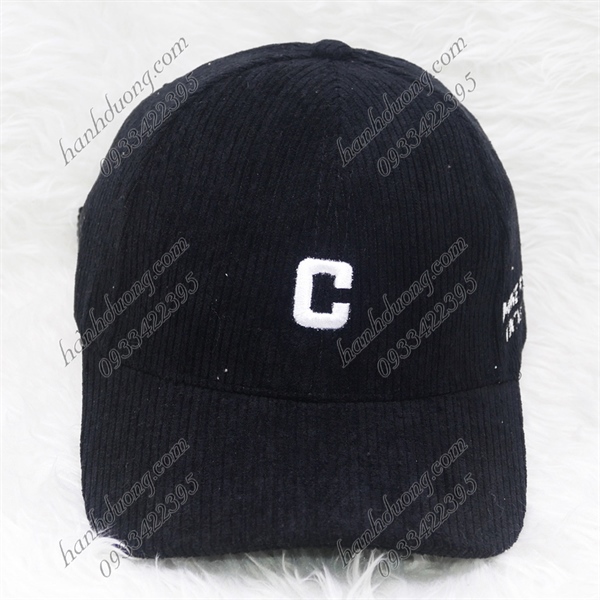 Nón kết nhung sớ đũa thêu chữ C – Đen