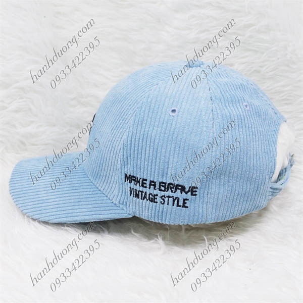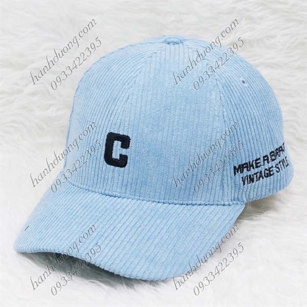 Nón kết nhung sớ đũa thêu chữ C – Xanh lam