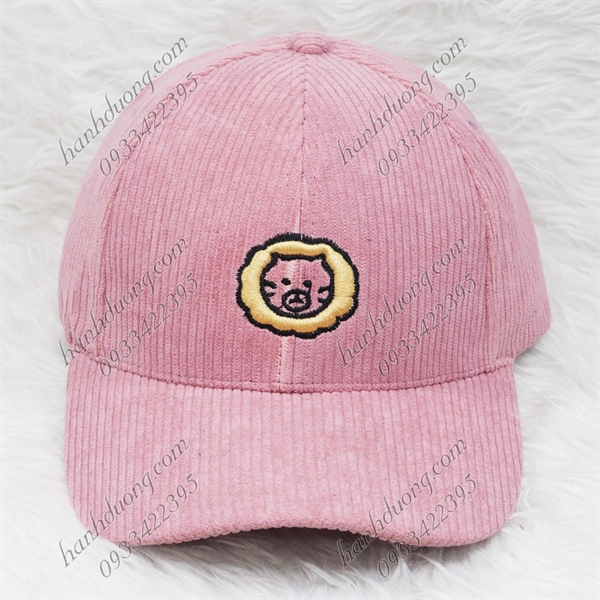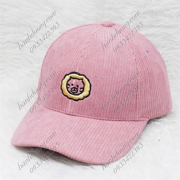 Nón kết nhung sớ đũa thêu hình mặt sư tử – Hồng