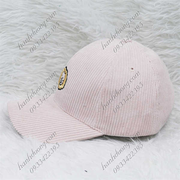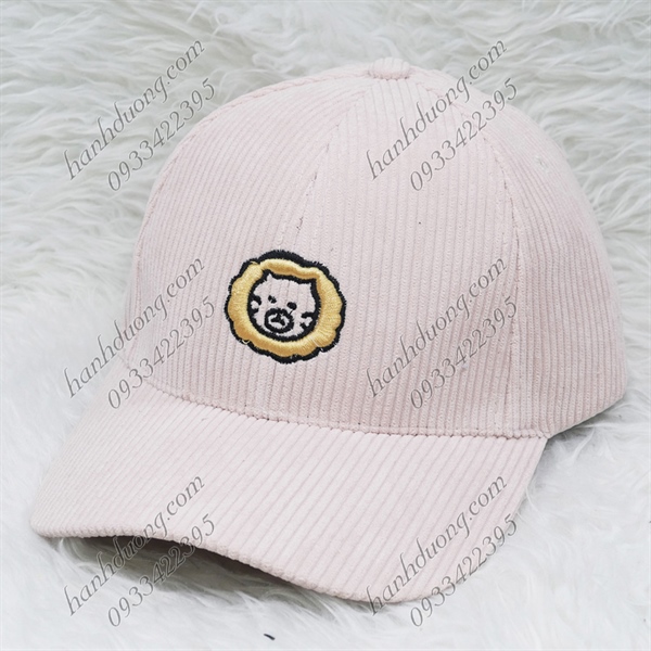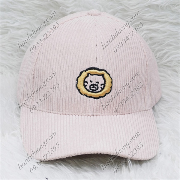 Nón kết nhung sớ đũa thêu hình mặt sư tử – Kem