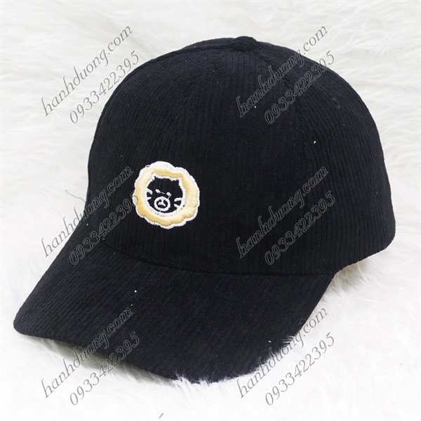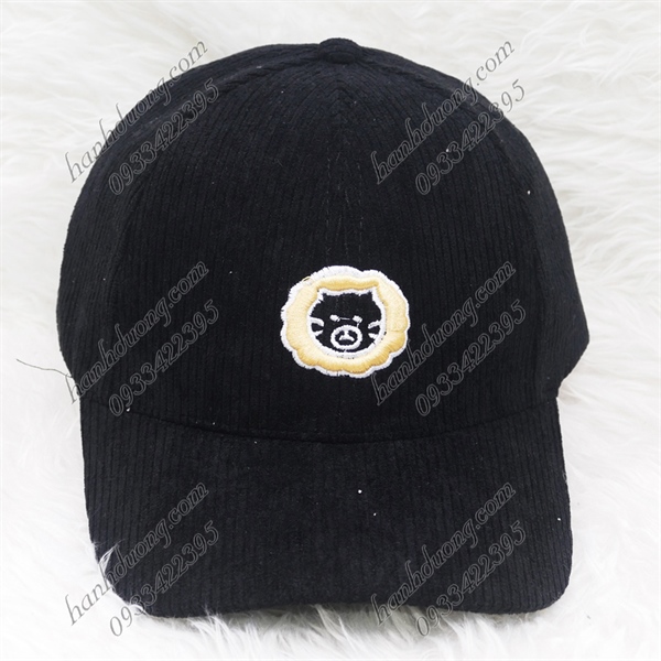 Nón kết nhung sớ đũa thêu hình mặt sư tử – Đen