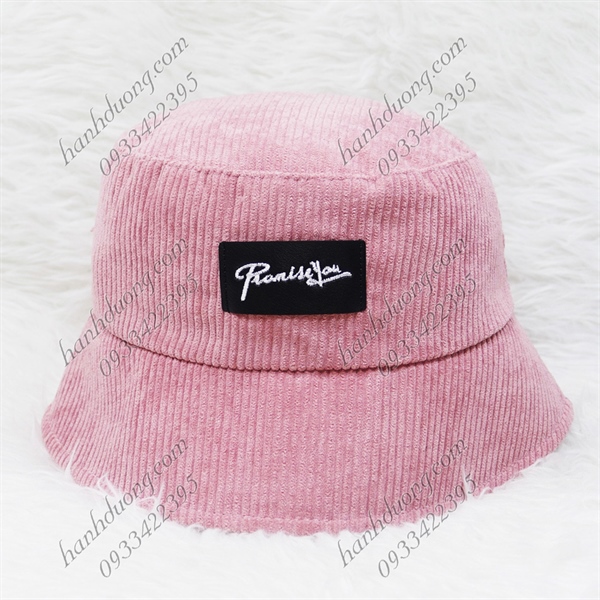 Nón kết nhung thêu chữ Promiss You sớ nhung đũa to – Hồng