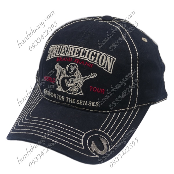 Nón kết ông địa jean True Religion loại xịn gắn mặt sắt chữ V ở kết – Đen
