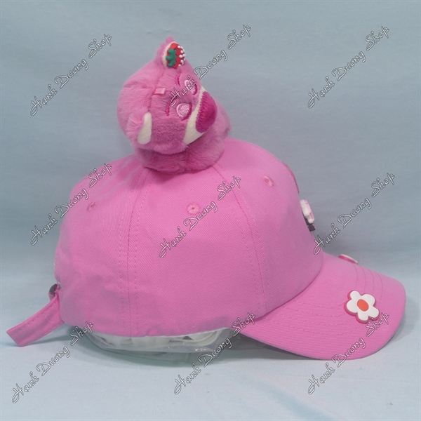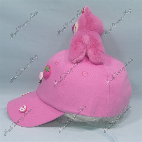 Nón Kết Trẻ Em Hàng Quảng Châu Từ 2-6 Tuổi, Nón Kết Gấu Dâu Nằm Vòng Đầu 50-54cm Phía Trước Có Gắn Chữ BCB Đầu Hồng Nhạt