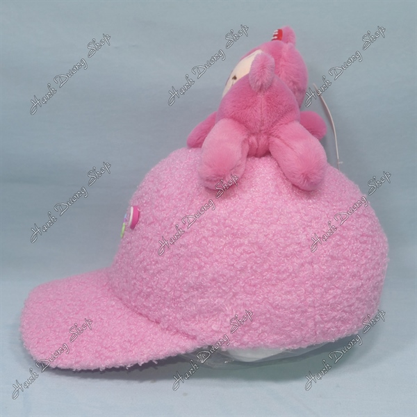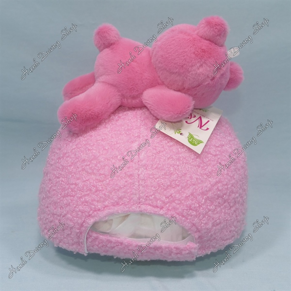 Nón Kết Trẻ Em Từ 3-7 Tuổi Hàng Việt Nam, Nón Kết Gấu Dâu Nằm Vòng Đầu 51-55cm Phía Trước Gắn Chữ Baby Hi Hồng Nhạt