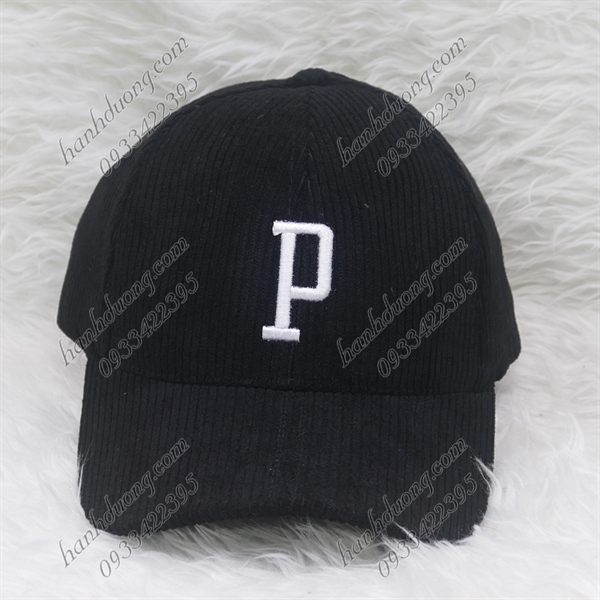 Nón kết vải nhung đũa thêu chữ P đẹp – Đen