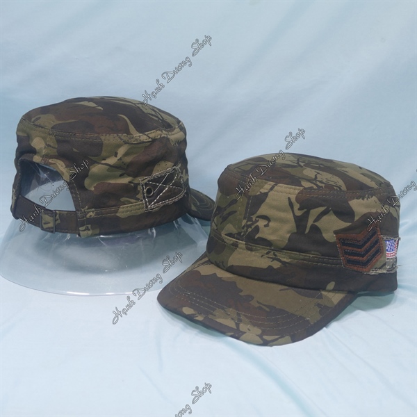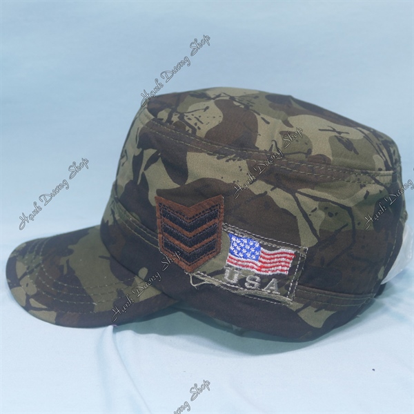 Nón Lính Nón Kết Đầu Bằng Thêu Lá Cờ USA Bên Hông Sọc Nâu