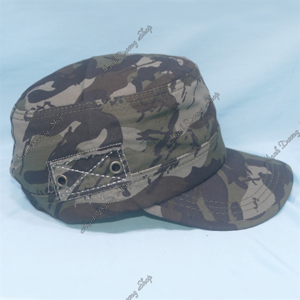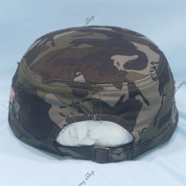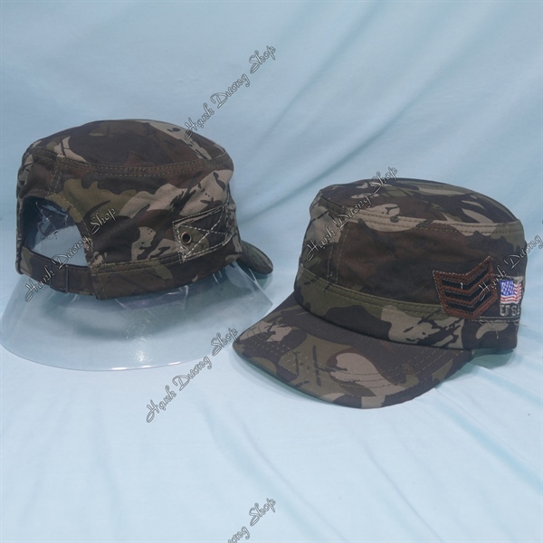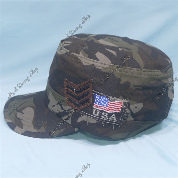 Nón Lính Nón Kết Đầu Bằng Thêu Lá Cờ USA Bên Hông Sọc Xám Nâu