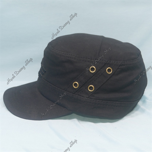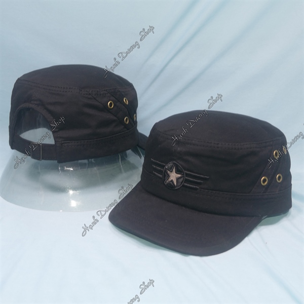 Nón Lính Nón Kết Đầu Bằng Thêu Ngôi Sao Chạy Sọc 2 Bên Hông, Có Đóng 4 Sò 2 Bên Đen