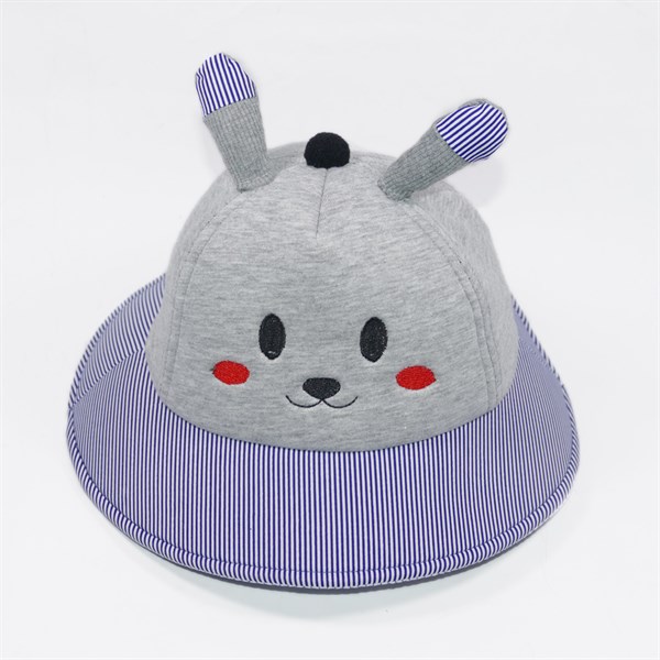 Nón nhí vải vành to mặt mèo có 2 tai độc đáo – Xám & xanh